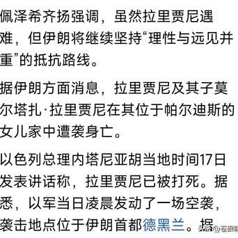 不说这些了,只说以色列“斩首”拉里贾尼与“巴斯基民兵”正副司令,对美以伊冲突影响几何?肯定有影响,但也不尽然,据说伊朗每个重要职务,都安排有234顺位接替者,如何“清除”得完?